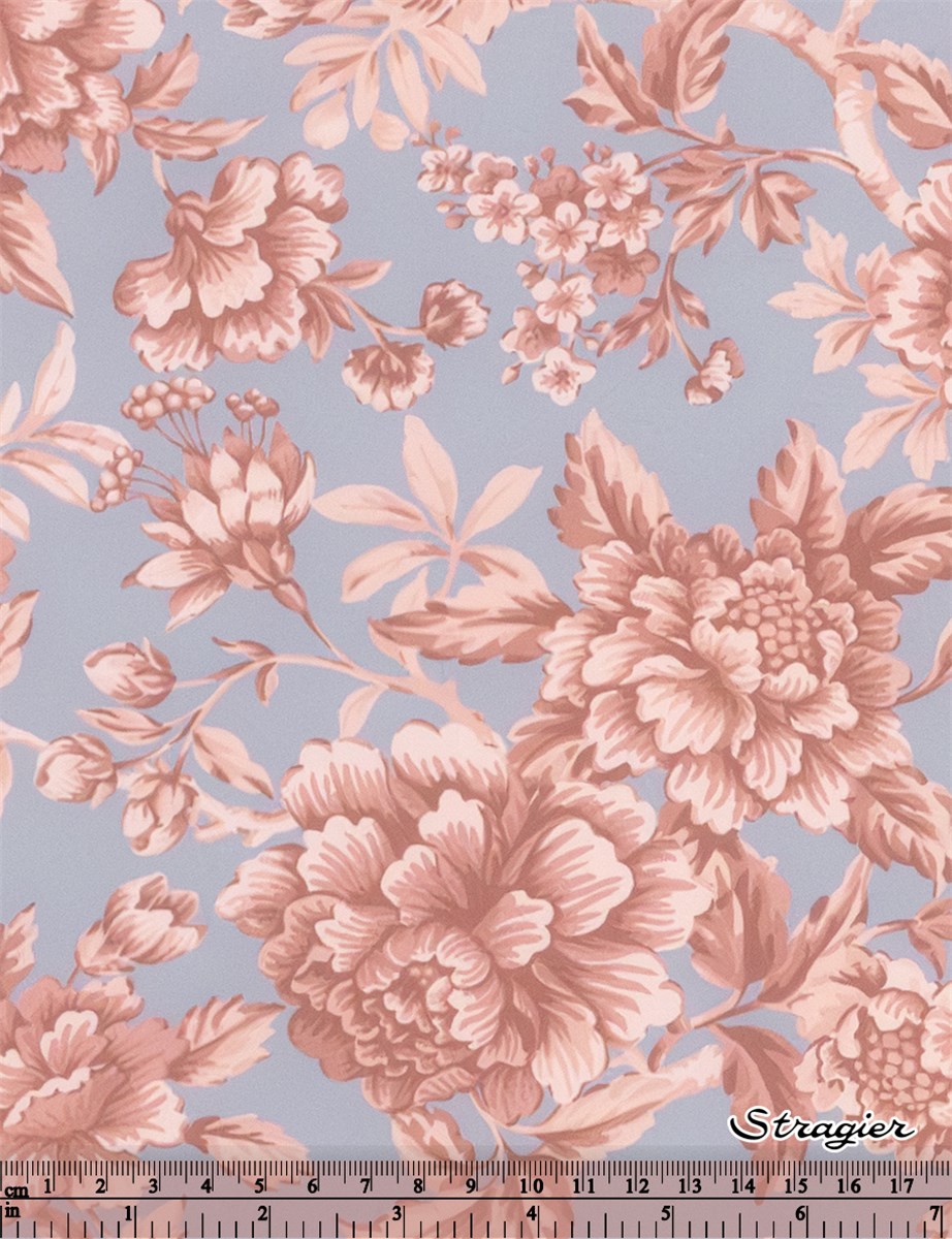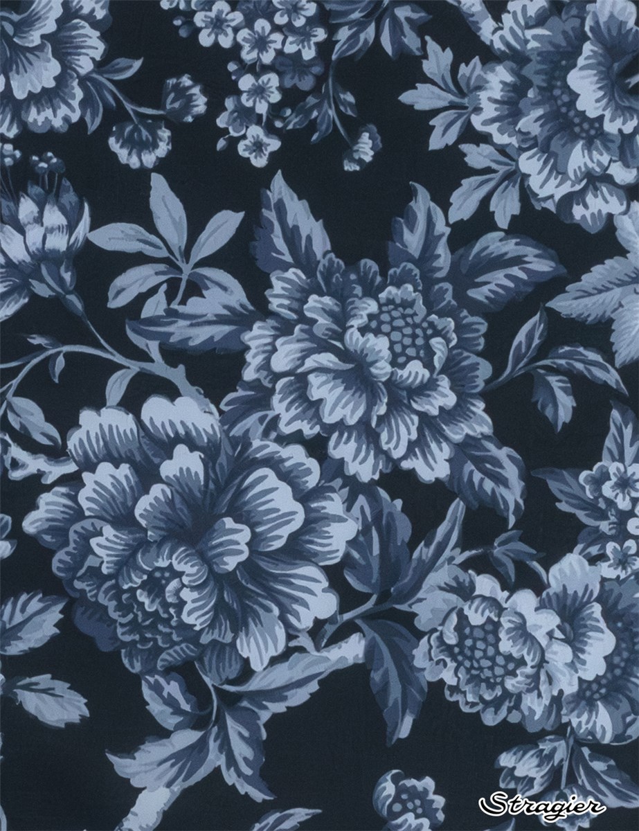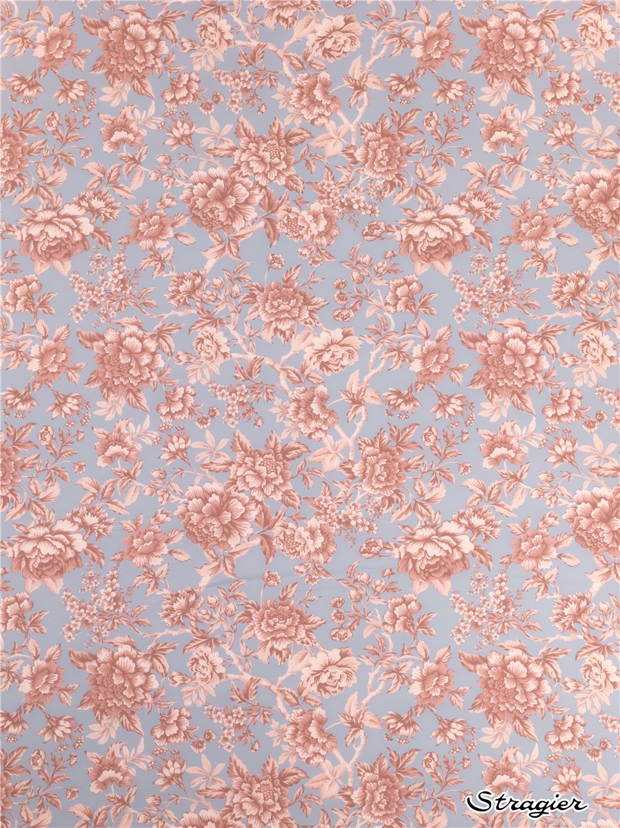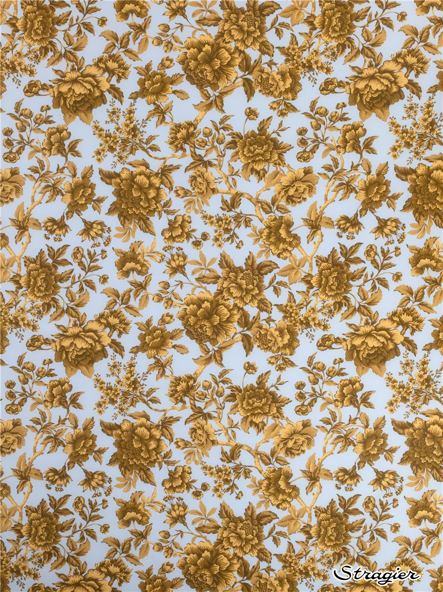 Regency Trail puise son inspiration dans une œuvre peinte à la main datant de 1969. Minutieusement réinterprété, ce motif se caractérise par des branches retombantes ornées de pivoines, de chrysanthèmes, d’œillets, et de fuchsias majestueux, nichés au cœur d’un feuillage luxuriant.