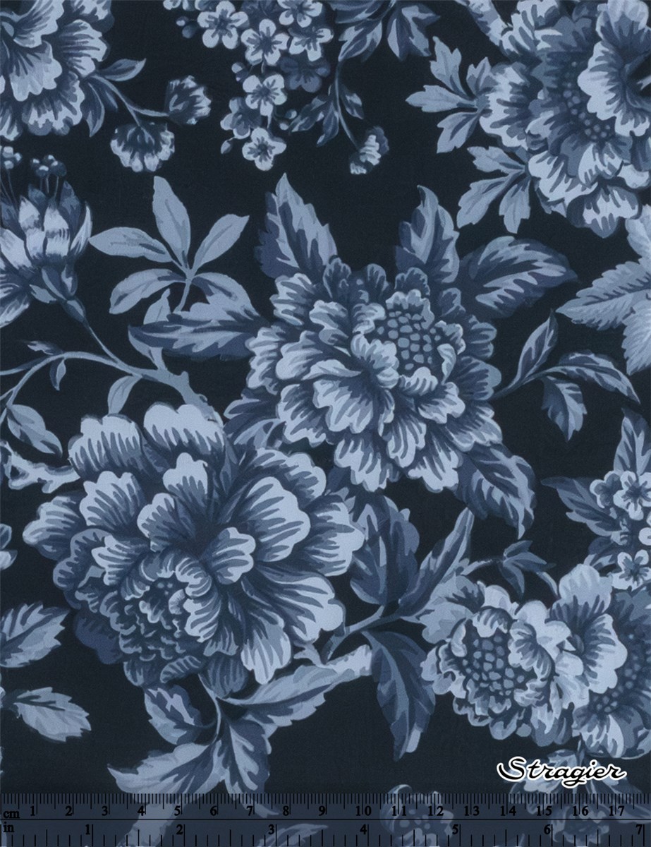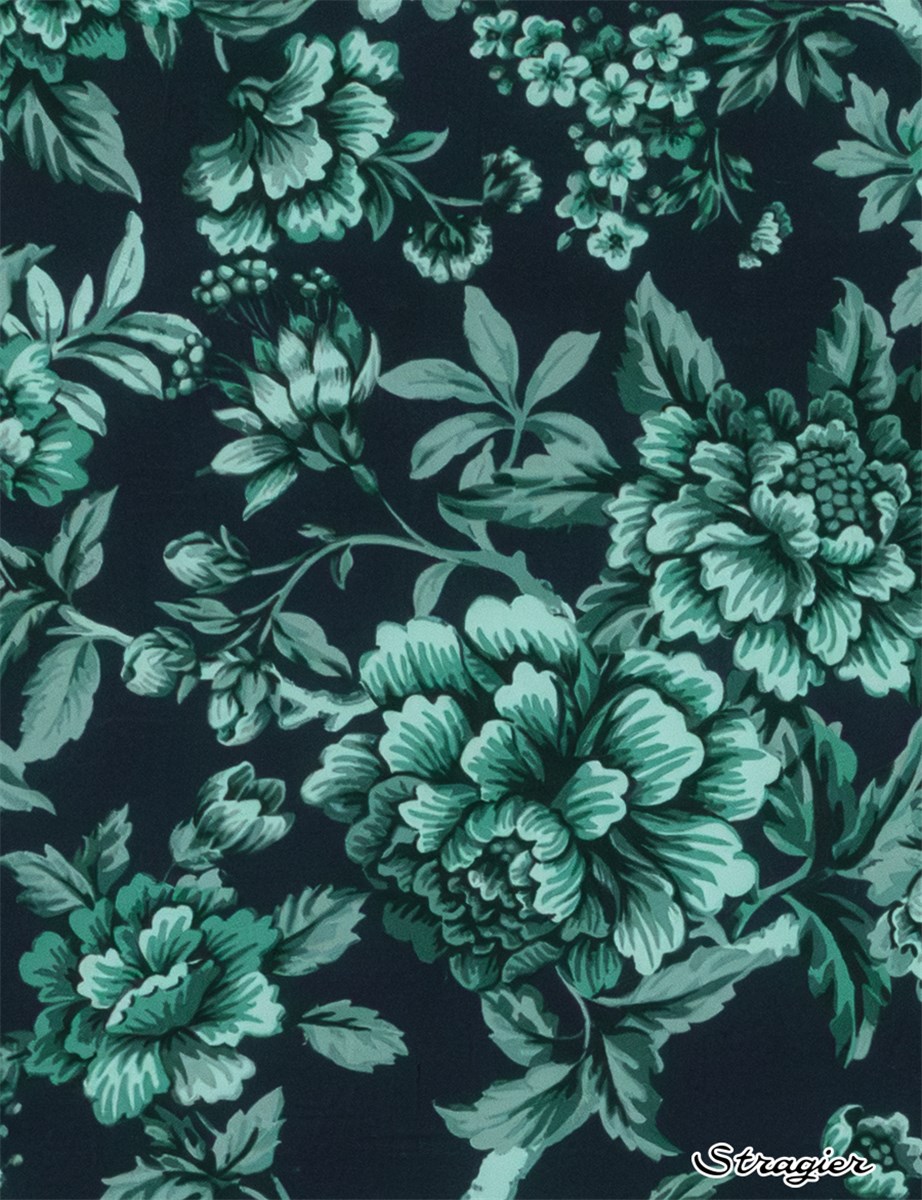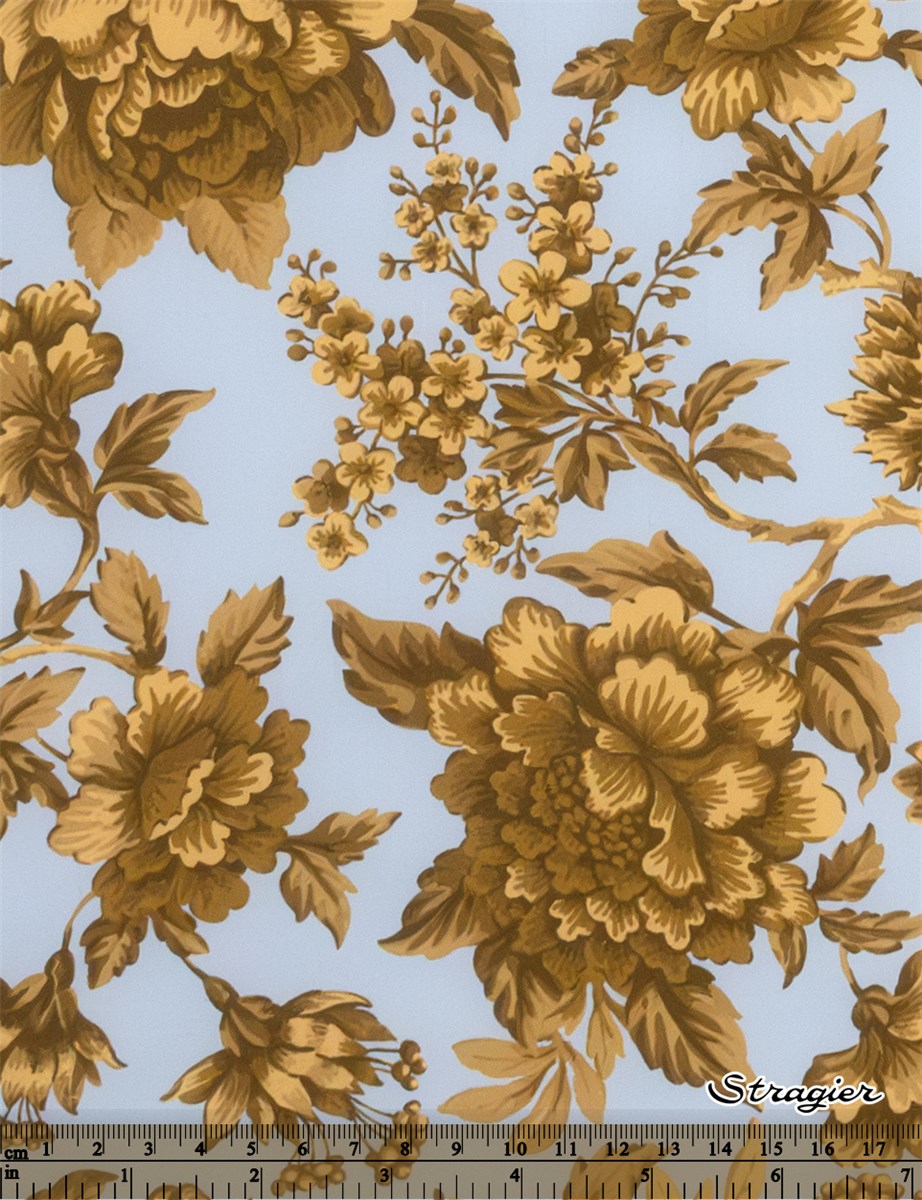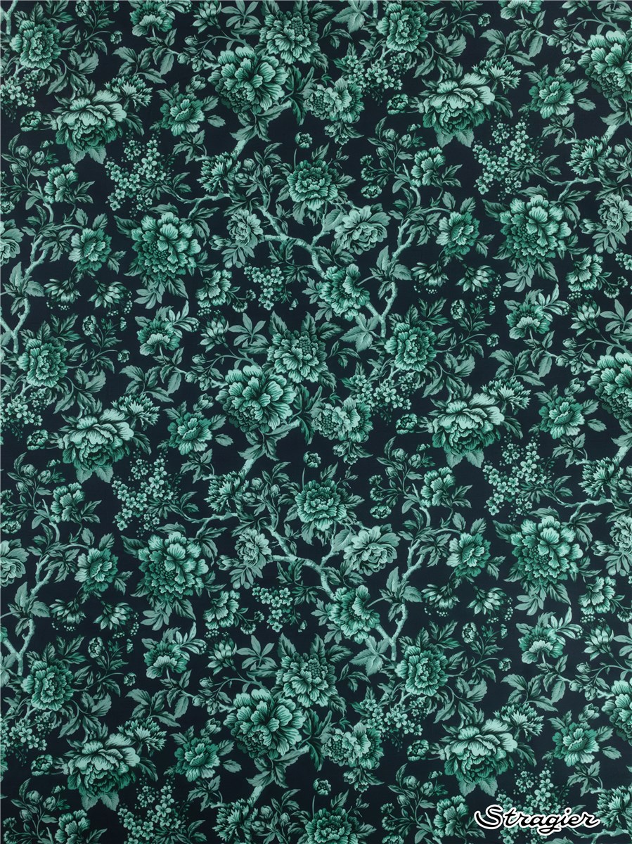 Regency Trail puise son inspiration dans une œuvre peinte à la main datant de 1969. Minutieusement réinterprété, ce motif se caractérise par des branches retombantes ornées de pivoines, de chrysanthèmes, d’œillets, et de fuchsias majestueux, nichés au cœur d’un feuillage luxuriant.