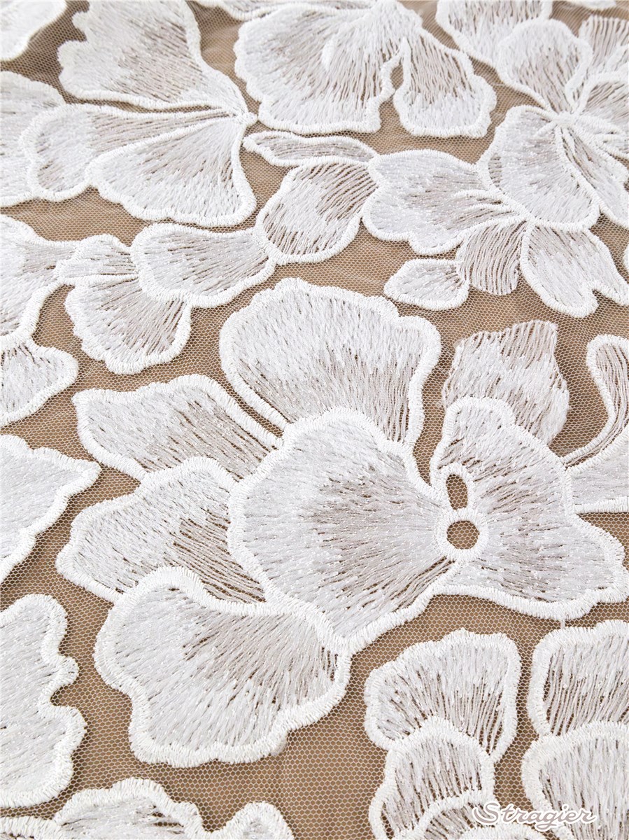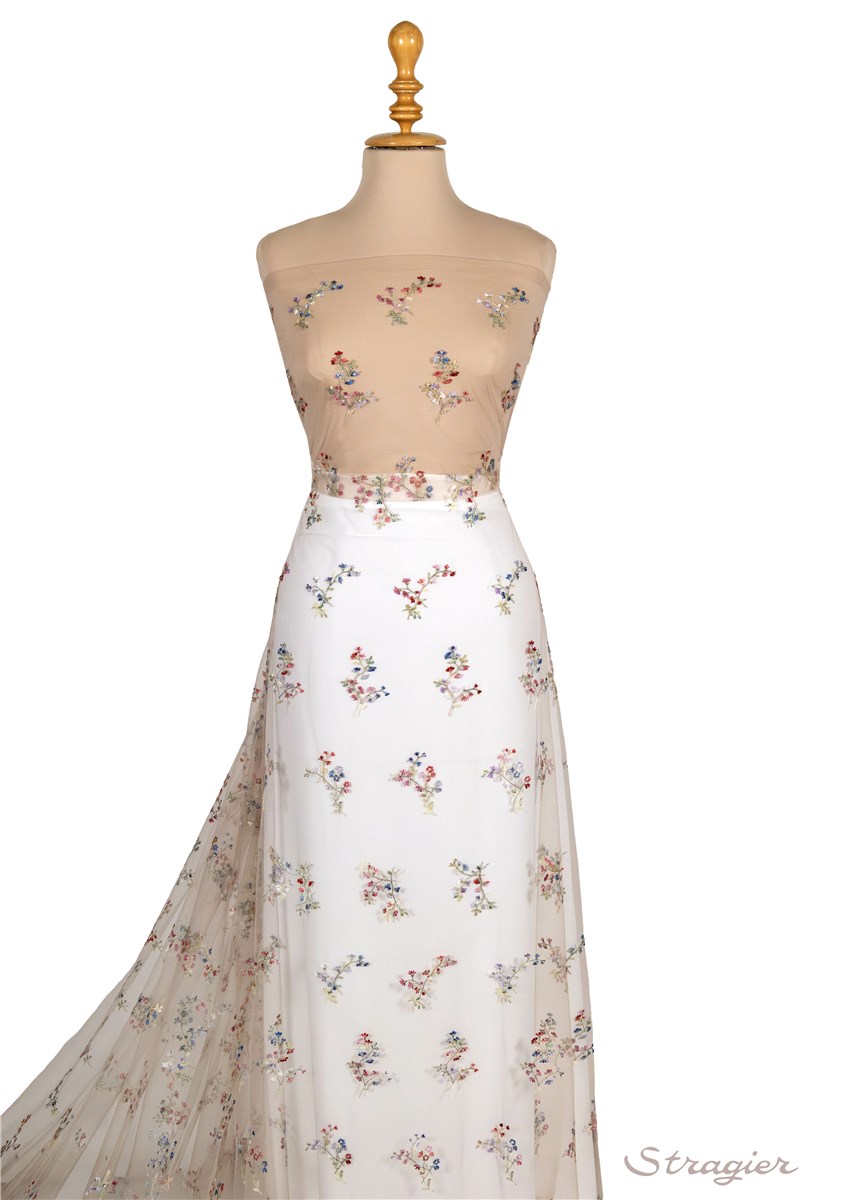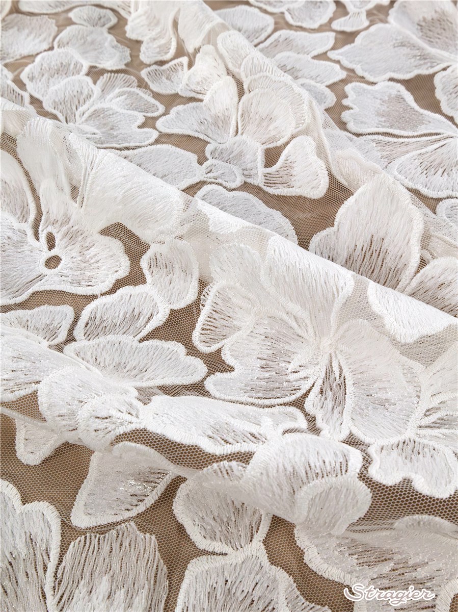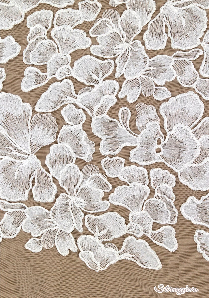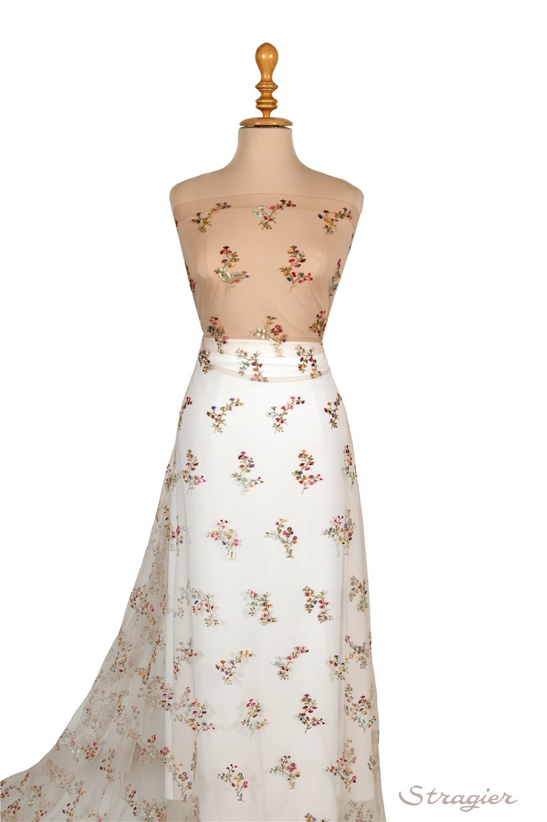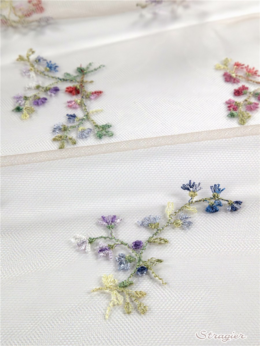 Découvrez nos collections de tissu brodé : tulle brodé finement, tulle brodé en relief, tulle brodé de fleurs, velours brodé, coton brodé, broderie anglaise, organza brodé, tissu en soie brodé, … pour réaliser les plus belles tenues de mariage, les robes de soirée, et les vêtements les plus raffinés.
