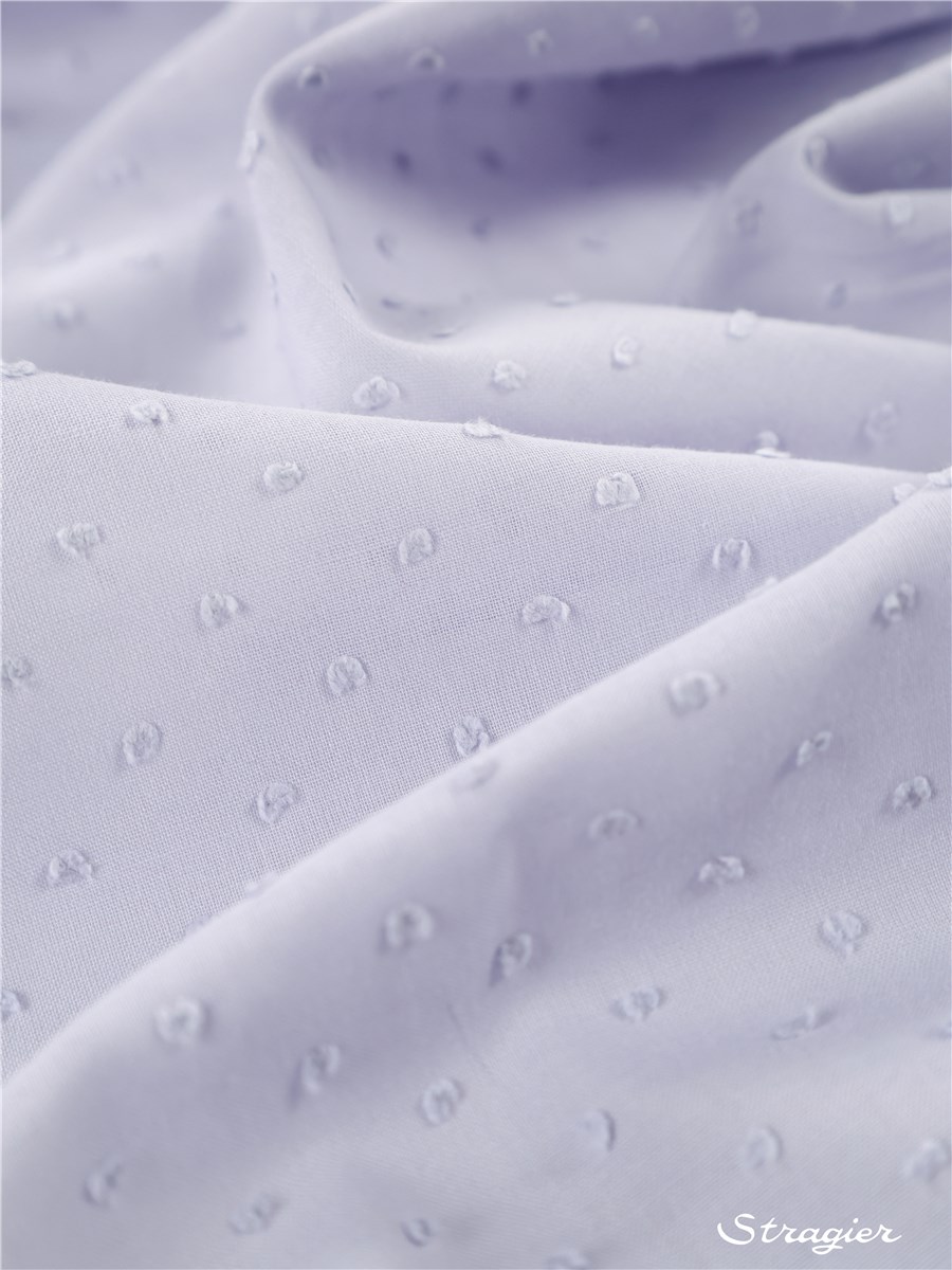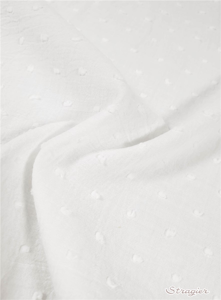 Le plumetis est une de nos spécialités chez Stragier. Tissu plumetis blanc, tissu plumetis noir ou en couleur, tissu plumetis transparent, nous réalisons le plumetis sous toutes les formes : tissé broché en batiste de coton, ou en batiste de viscose, plumetis floqué, plumetis brodé au fil fin sur organza, mousseline de soie, et même d’aériens tulles pour les voiles en plumetis.